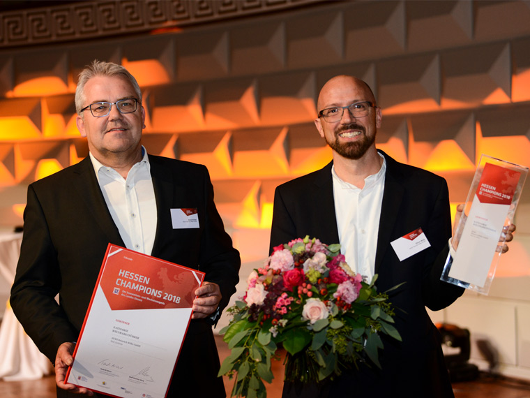 Mit den "Hessen Champions" würdigen das Wirtschaftsministerium, die Vereinigung hessischer Unternehmerverbände und die Mittelständische Beteiligungsgesellschaft Hessen besondere unternehmerische Erfolge. Ministerpräsident Volker Bouffier, Wirtschaftsminister Tarek Al-Wazir und VhU-Präsident Wolf Matthias Mang ehrten die Gewinner vor mehr als 1000 Gästen im Wiesbadener Kurhaus.