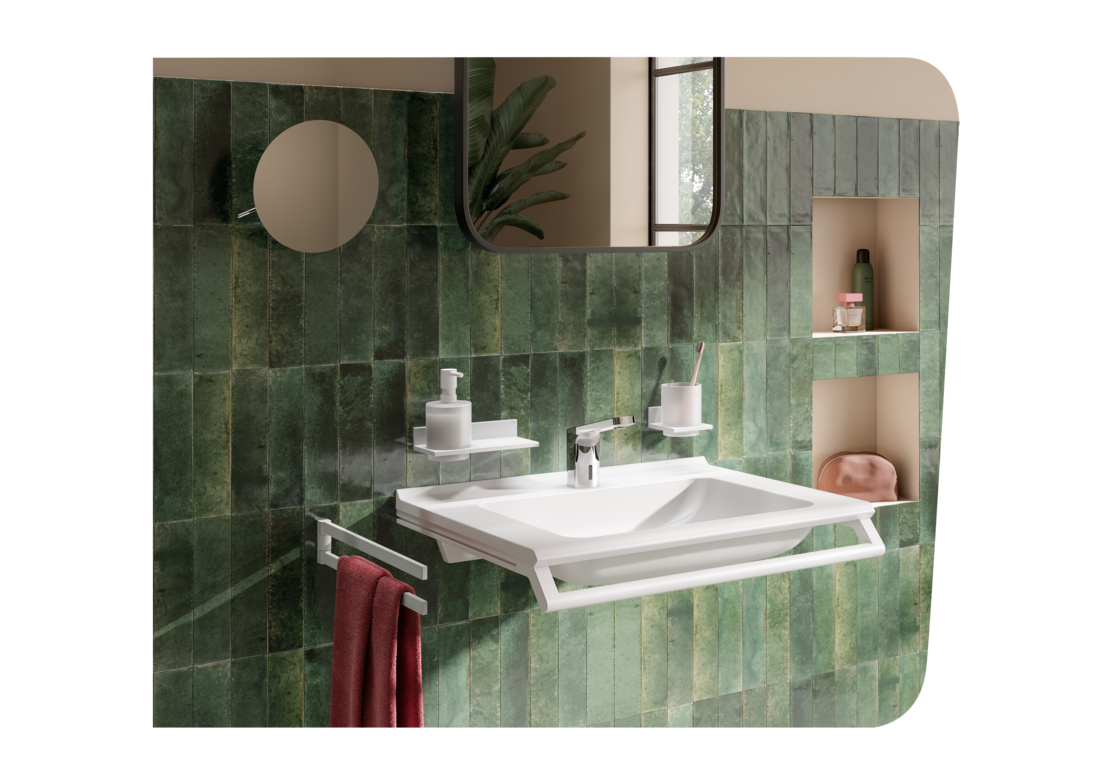 The accessories in our System 900 Q are designed with square shapes and clearly defined radii and proportions. With their delicate and visually light design, they create timeless accents in your modern bathroom.