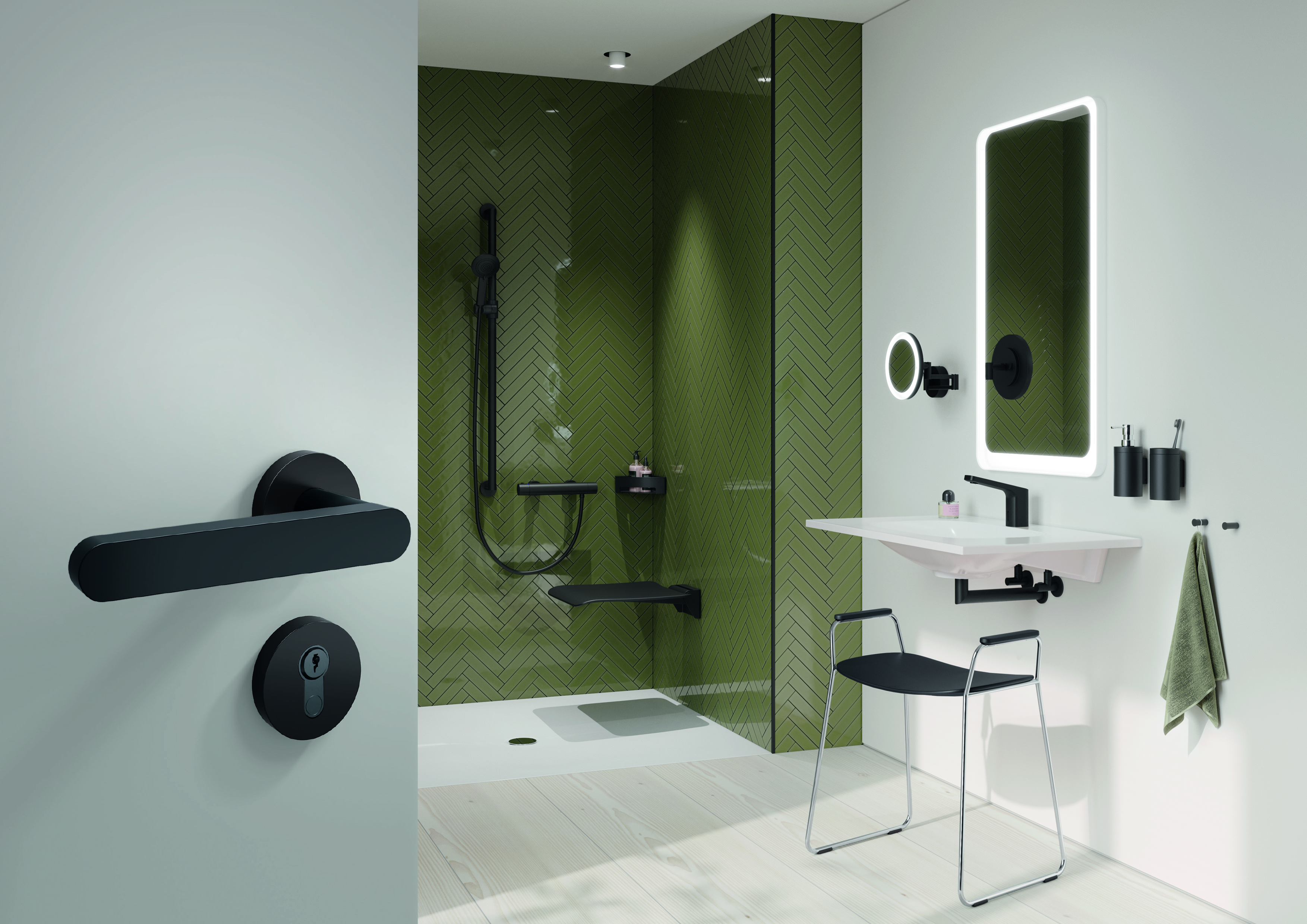 Within the HEWI range, it is above all the carefully developed colour concepts that offer exceptional planning variety. The mini design variant also allows planners to make use of individual design possibilities. The high-quality 270 fitting range now features the brand-new Choose your own Colour palette, offering an inspiring spectrum of over 4,500 possible colours – including on-trend shades such as Soothing Cedar Brown, Faded Cinder Rose, and Somber Sage Green.